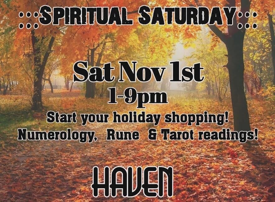 Get ready to immerse yourself in the magic of the season! Haven will be offering extended hours where i will provide rune, tarot, and oracle readings. Astrology readings will also be available, led by the talented Diana. Bring the whole family to enjoy Day of the Dead activities suitable for all ages. Whether you're seeking guidance, connection, or simply looking to embrace the enchanting energy of the season, this is the perfect chance to celebrate and explore.